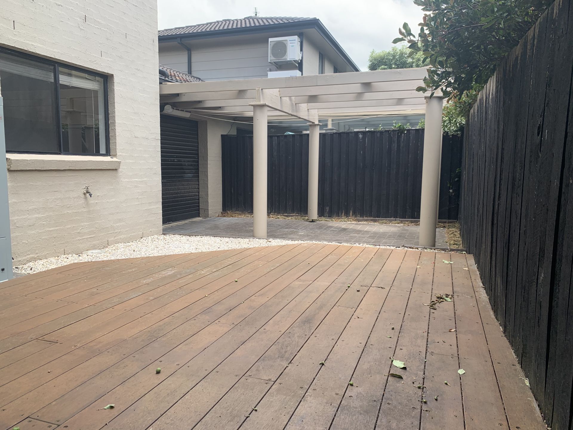 - Private enclosed courtyard with deck and pergola