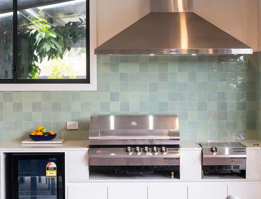 Renovated kitchen with stone benchtops, SMEG gas cooktop and electric oven, AEG ducted exhaust, integrated AEG dishwasher, soft close doors and drawers. Fridge space is wide enough to accommodate a French door style fridge with option for water supply for ice maker.