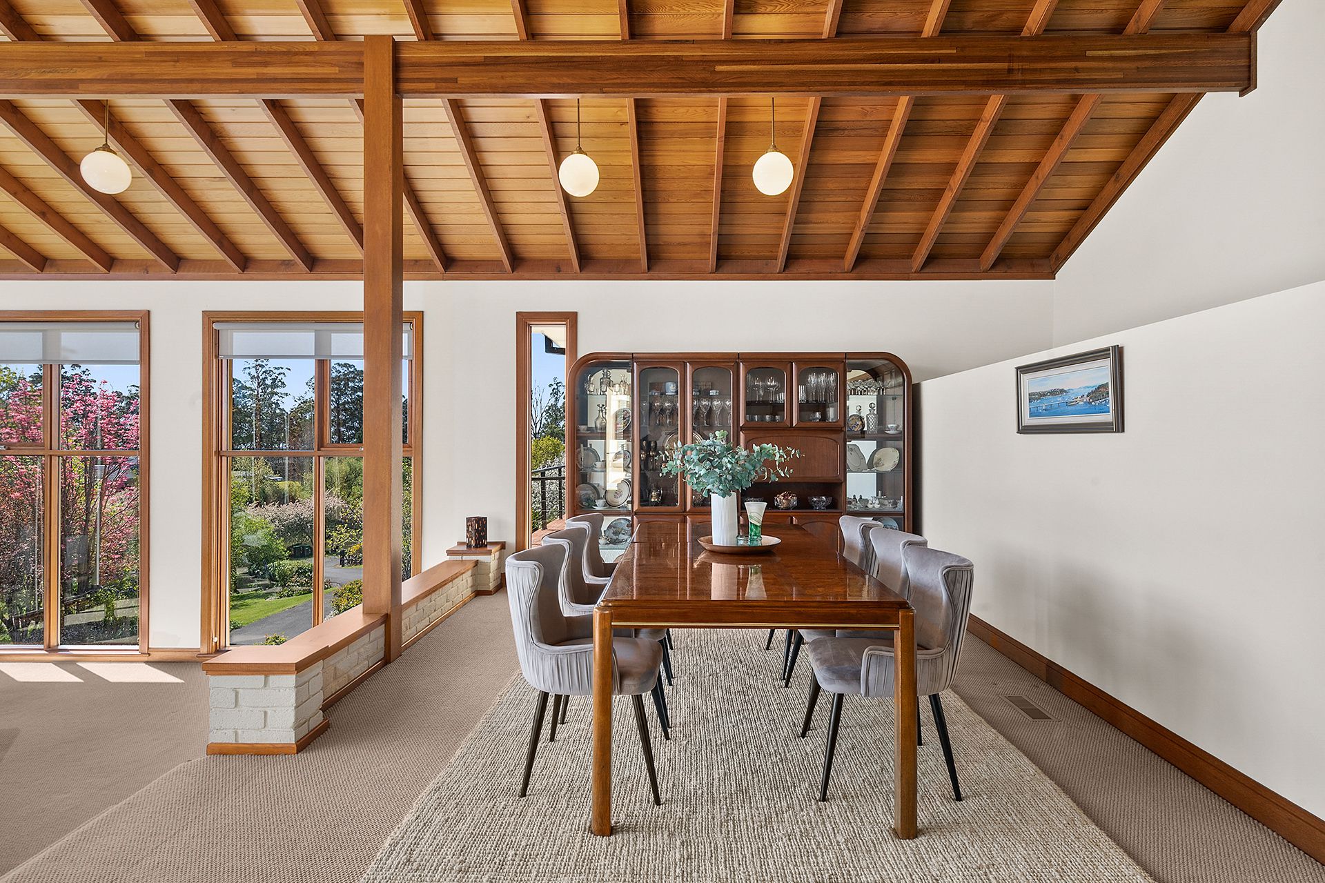 * The formal lounge and dining room has a statement timber lined cathedral ceiling and magnificent garden views