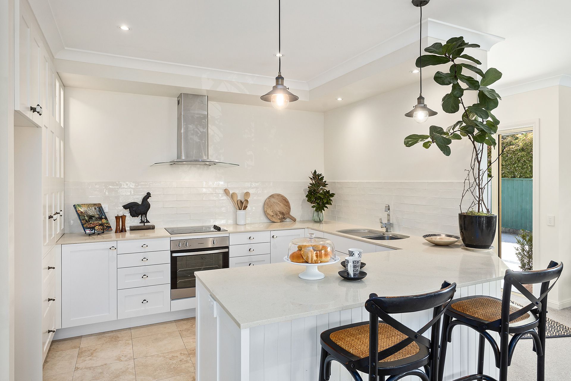 * An elegant French Provincial kitchen with electric cooking, dishwasher and stone benches