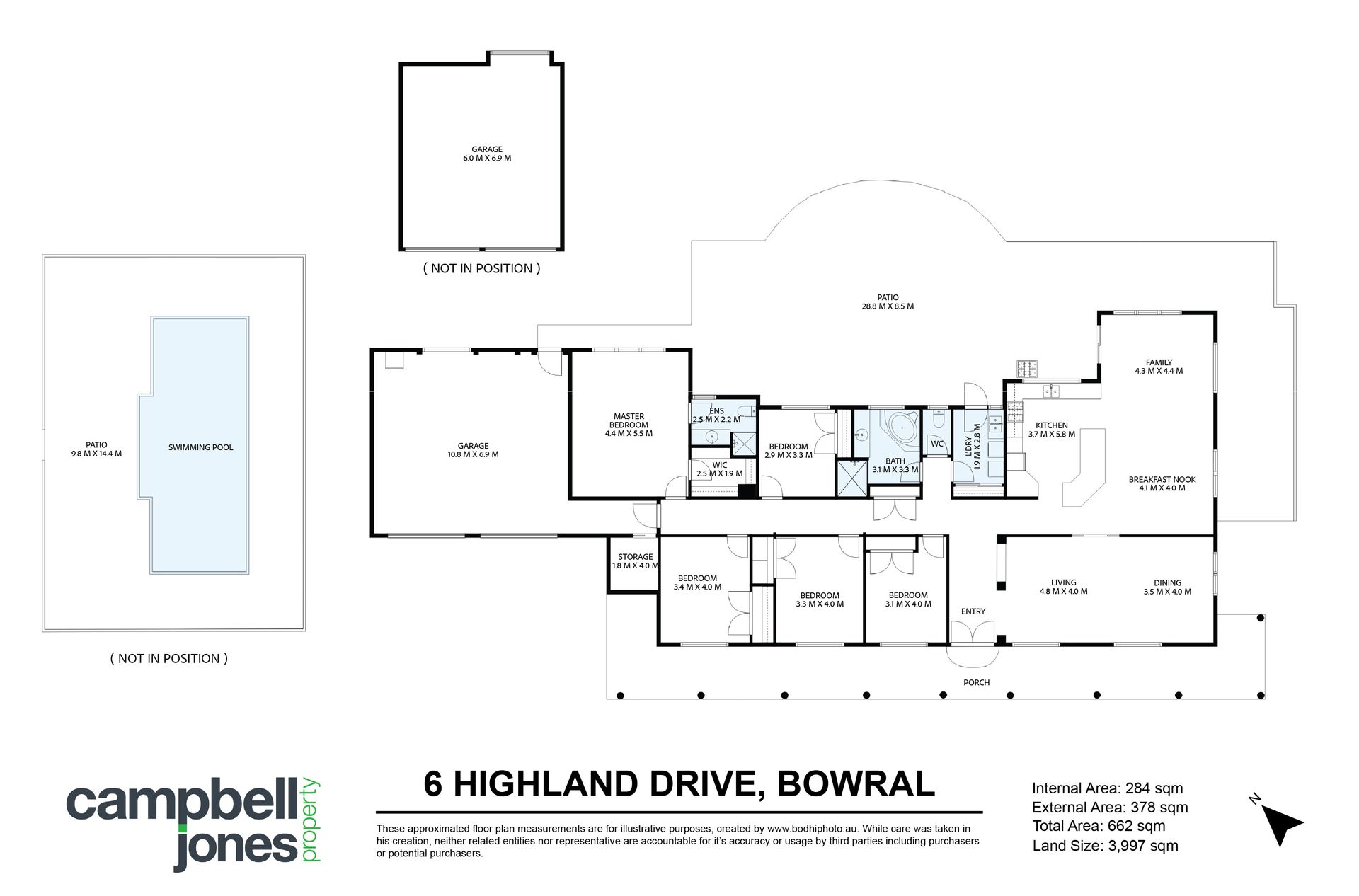 Formal lounge and dining room, sunny kitchen, meals and family room opening to a protected northern outdoor entertaining area, with heated saltwater pool.