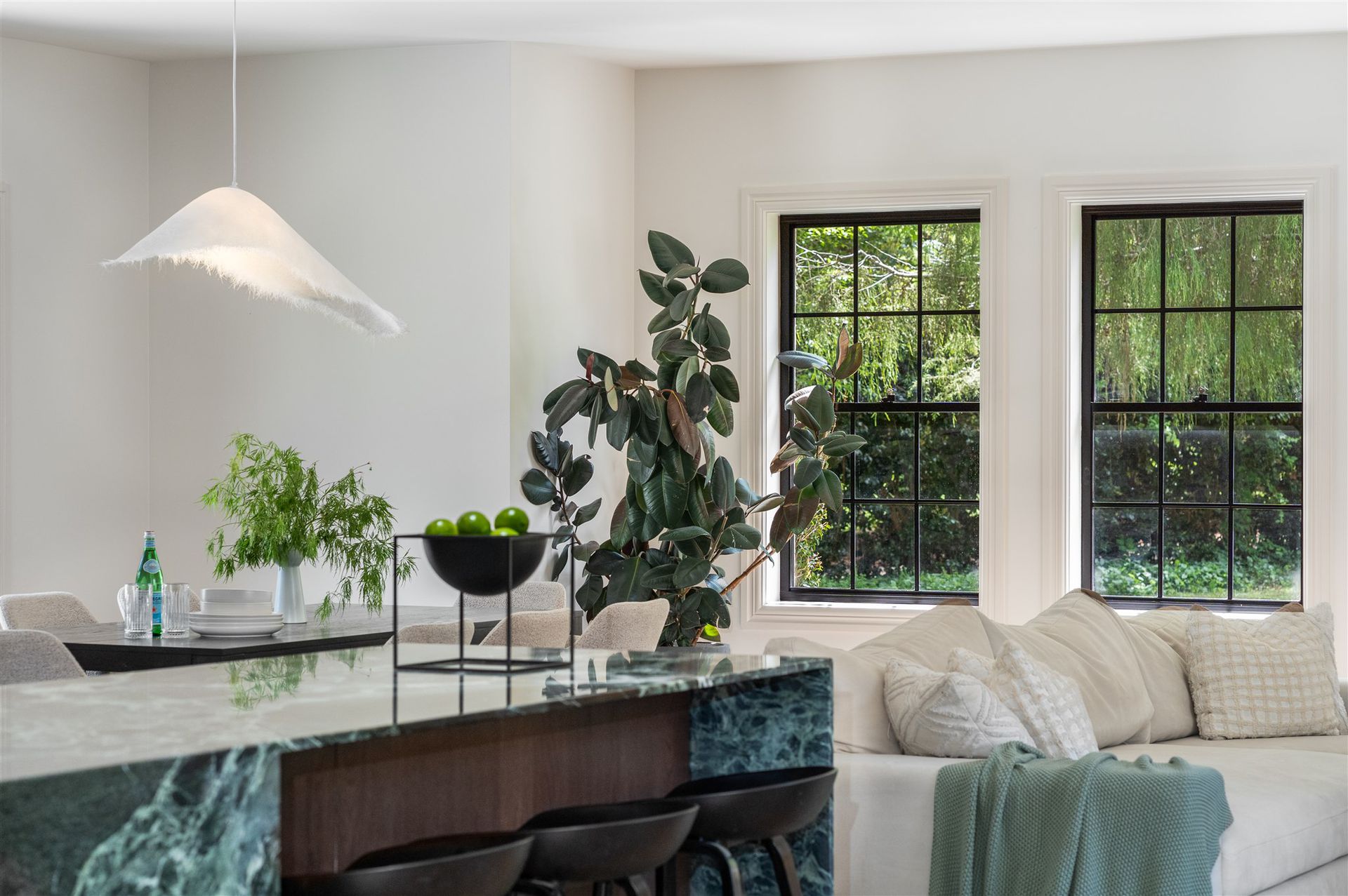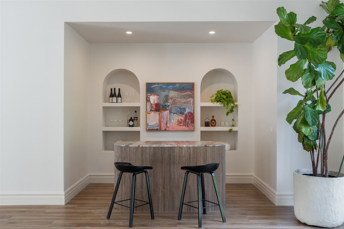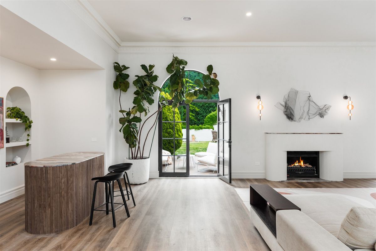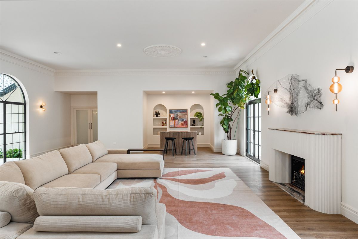 Behind its timeless façade, this five-bedroom residence has been completely reimagined into a sophisticated family retreat that balances grandeur with warmth and comfort. Every space has been meticulously considered, from the curved fireplace and bespoke joinery to the calming neutral palette and natural textures that create an effortless sense of cohesion.