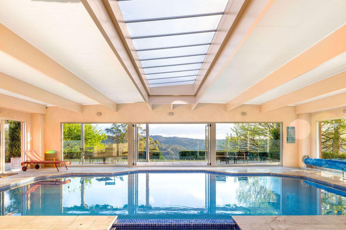 A heated indoor pool is housed by a pavilion that offers the same exquisite design and construction as the homestead and features a wet bar and bathroom plus a roof top solar system.