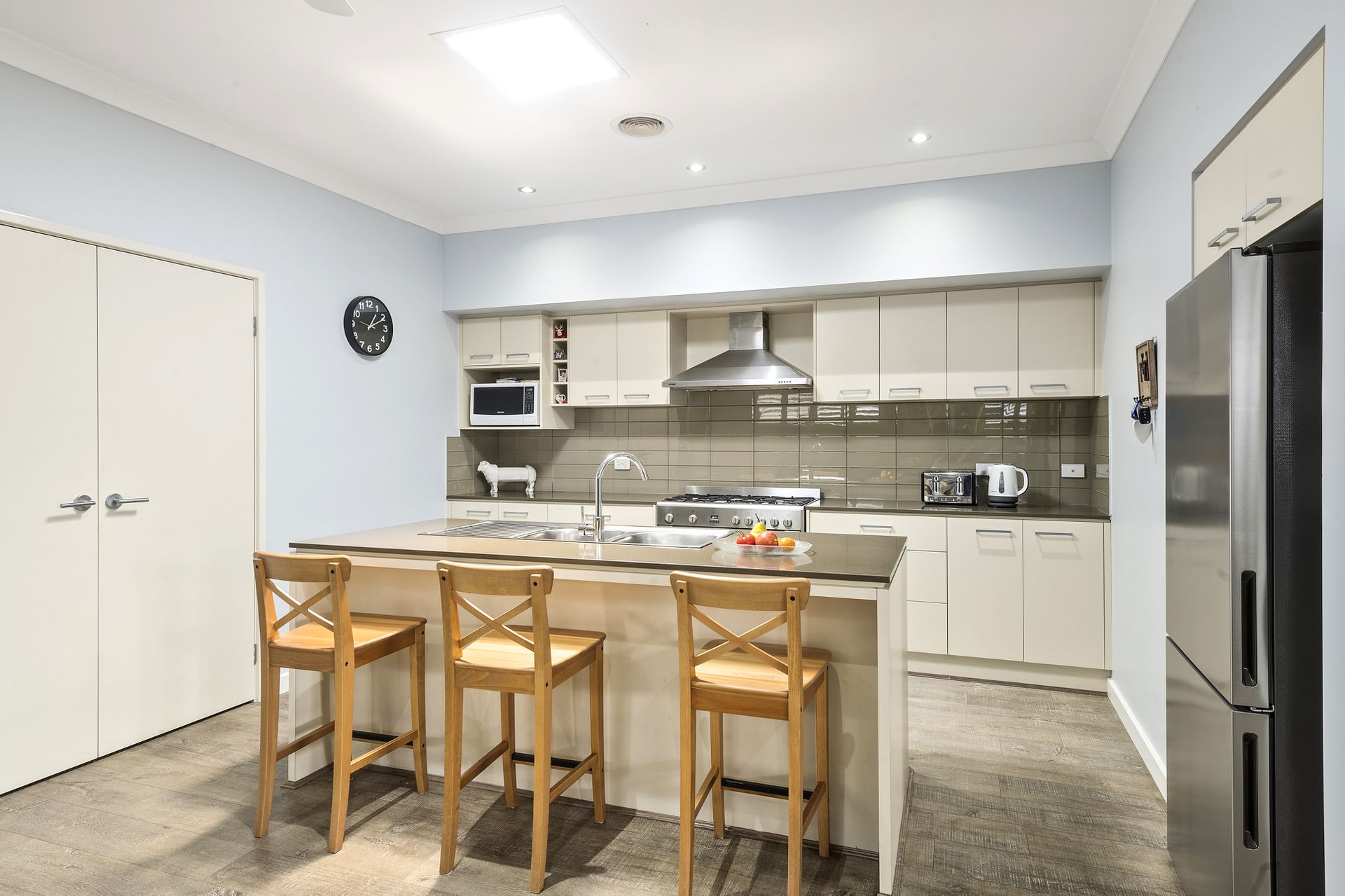 * The large kitchen has an island bench, dishwasher, Omega gas and electric stove.