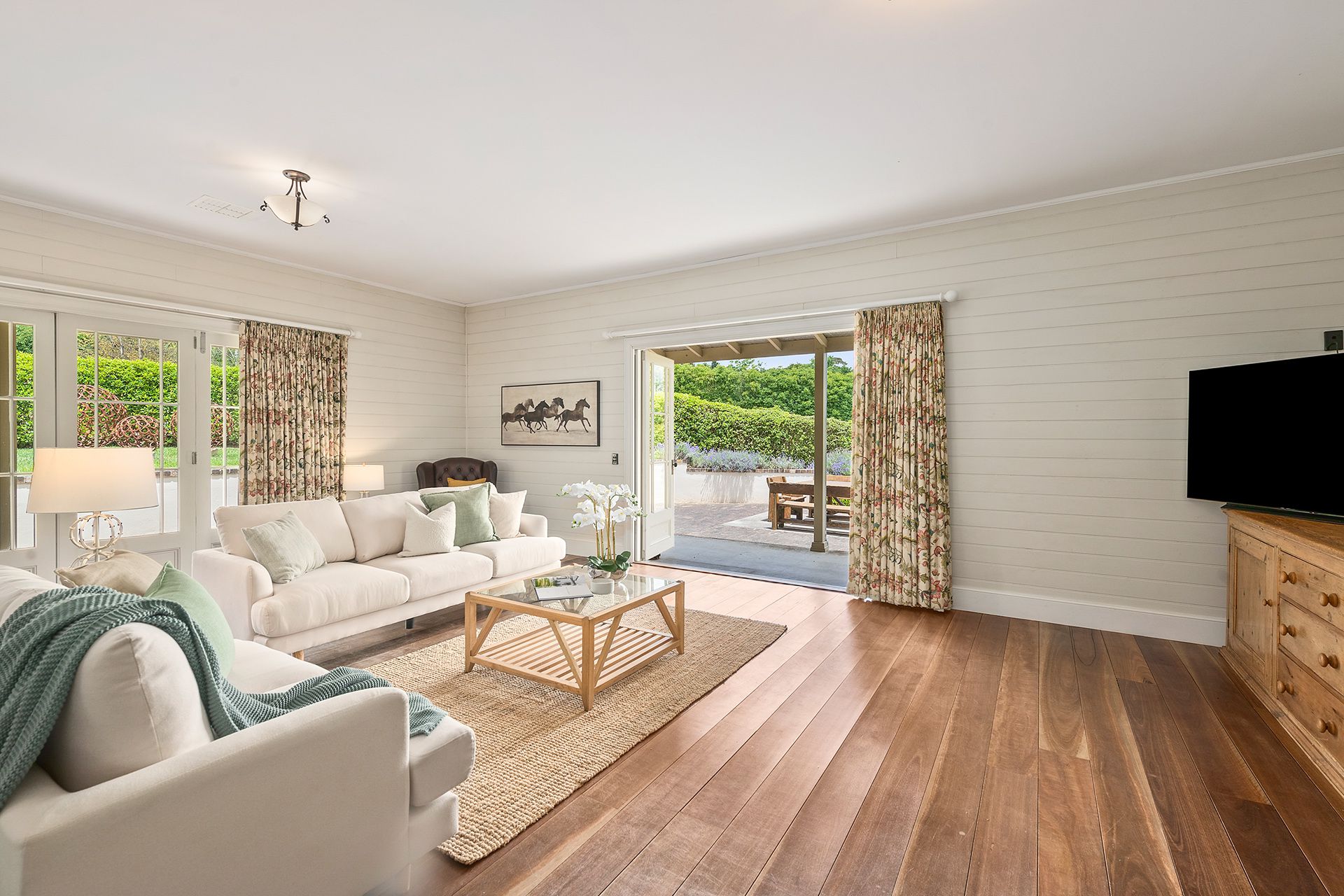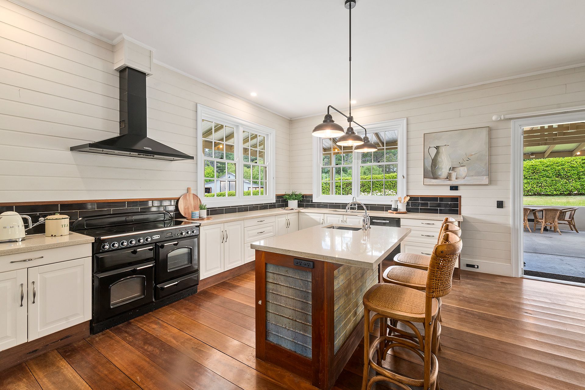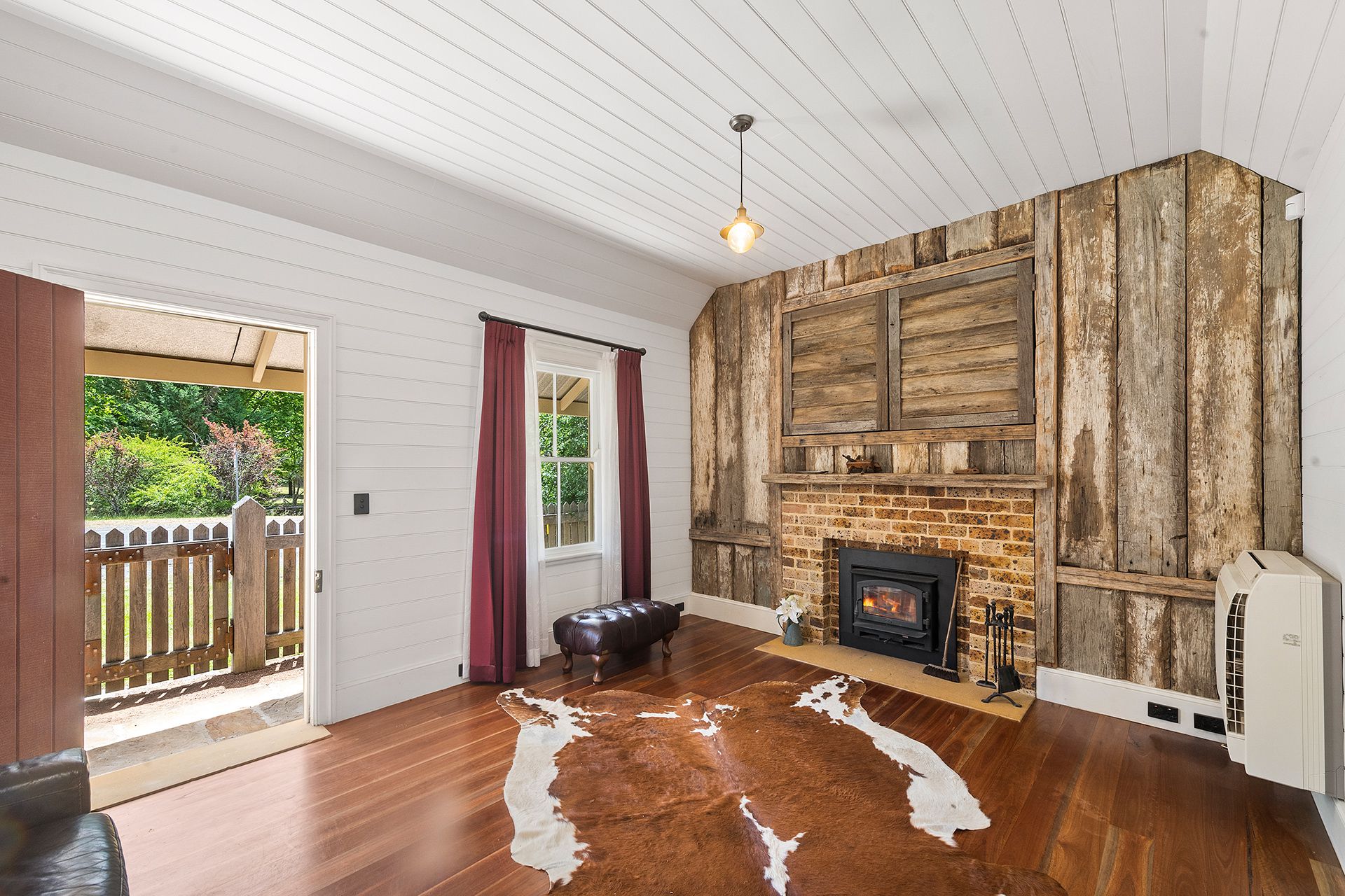 Beaming with character and benefitting from the same thorough renovation and restoration. Built as the initial residence in 1944, it later served as a shop in the mid 1800's. It now serves as a self contained cottage, complete with separate bathroom, bedroom, kitchenette and spacious living area with TV hidden behind repurposed timber doors. Warmed with split system airconditioning & Lopi fireplace. It is perfect au-pair accommodation, BnB, or home office (if you can keep the teenagers out).