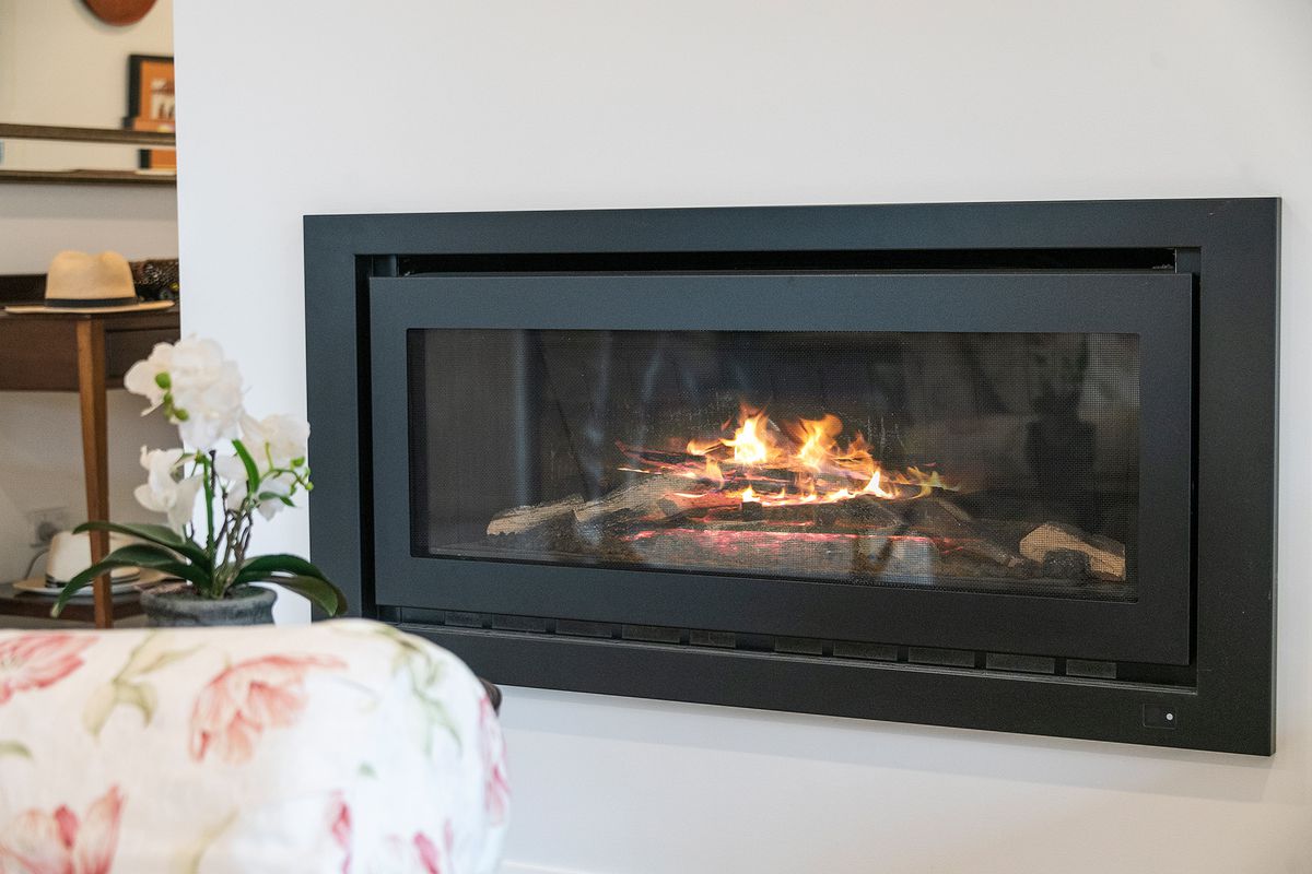 * Heat pump reverse cycle, fully ducted, gas log fire