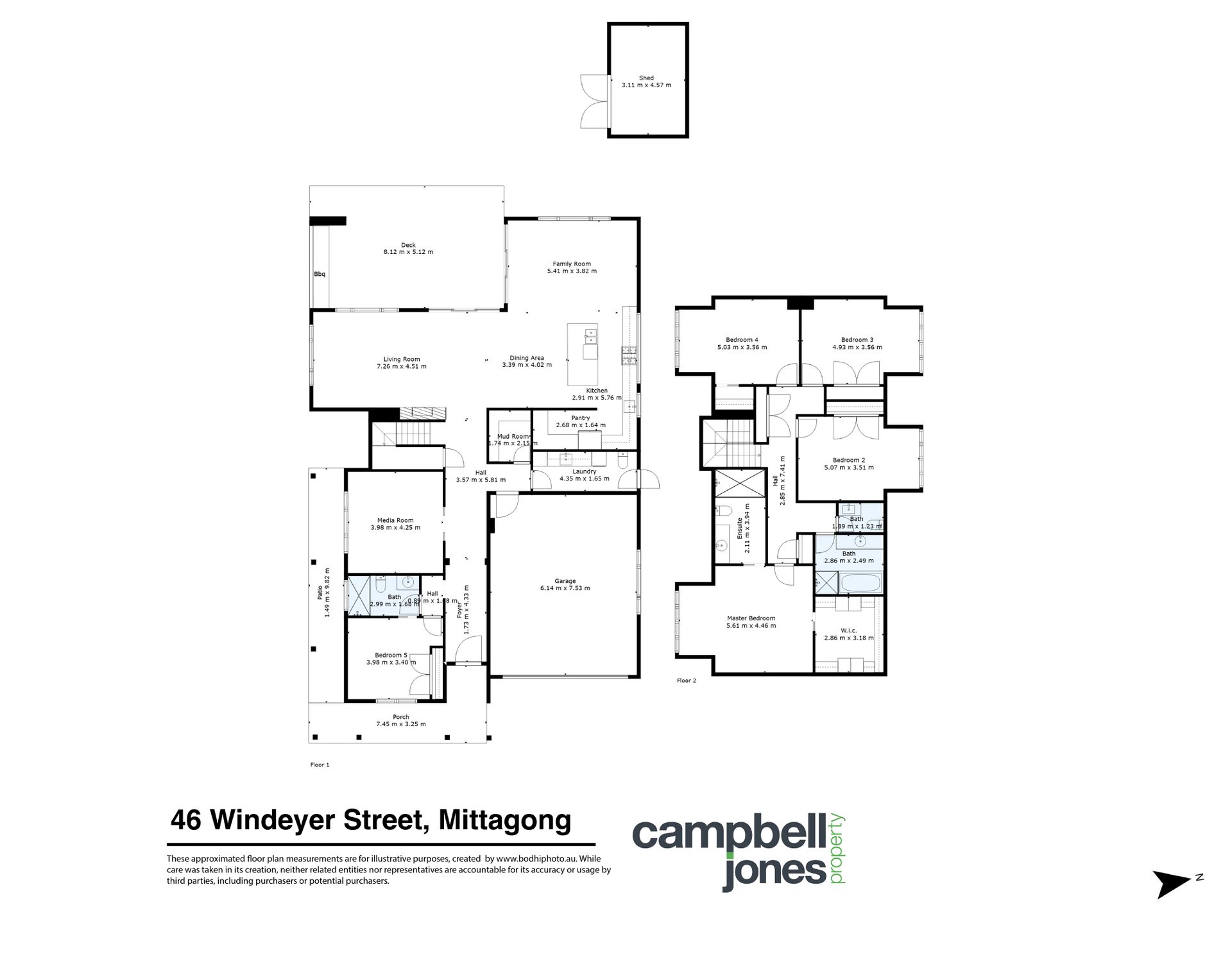 * 5 generous bedrooms, master with walk in robe and ensuite