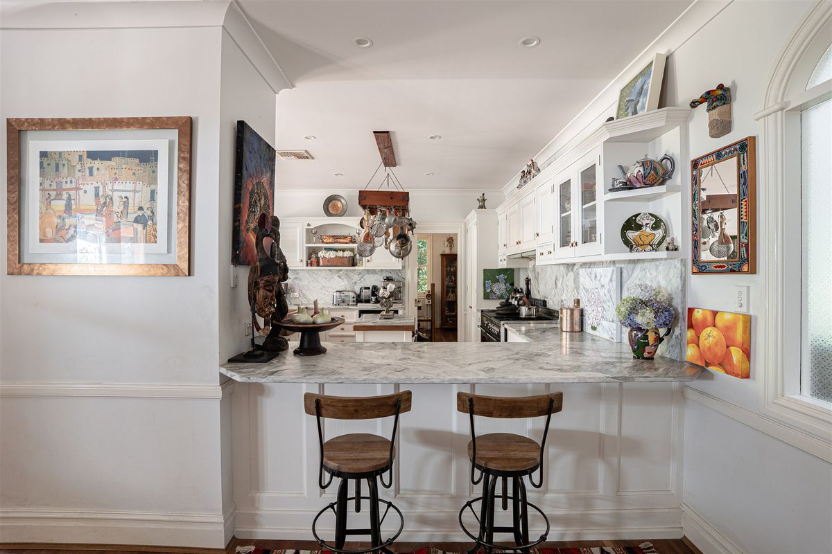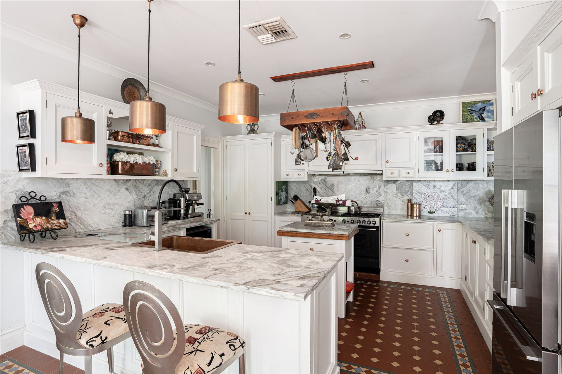 This gracious two-storey country residence offers timeless elegance, scale and seclusion. At the heart of the home, the kitchen, with Italian Carrara marble, copper sink and copper light fittings and a Paul Bocuse Rosieres stove with a double oven, is perfectly positioned to connect with the main living, formal dining room and informal living areas that overlook the surrounding gardens. An outdoor BBQ area is complemented by multiple dedicated alfresco dining spaces.