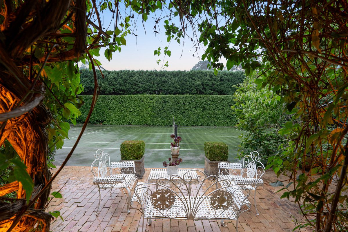 A stunning, mature garden surrounds the home, creating a peaceful private retreat filled with seasonal colour and natural beauty. A floodlit north–south oriented tennis court is discreetly positioned within the grounds, offering year-round recreation in a truly estate-like environment.