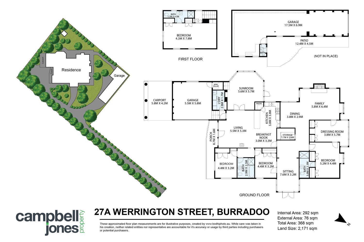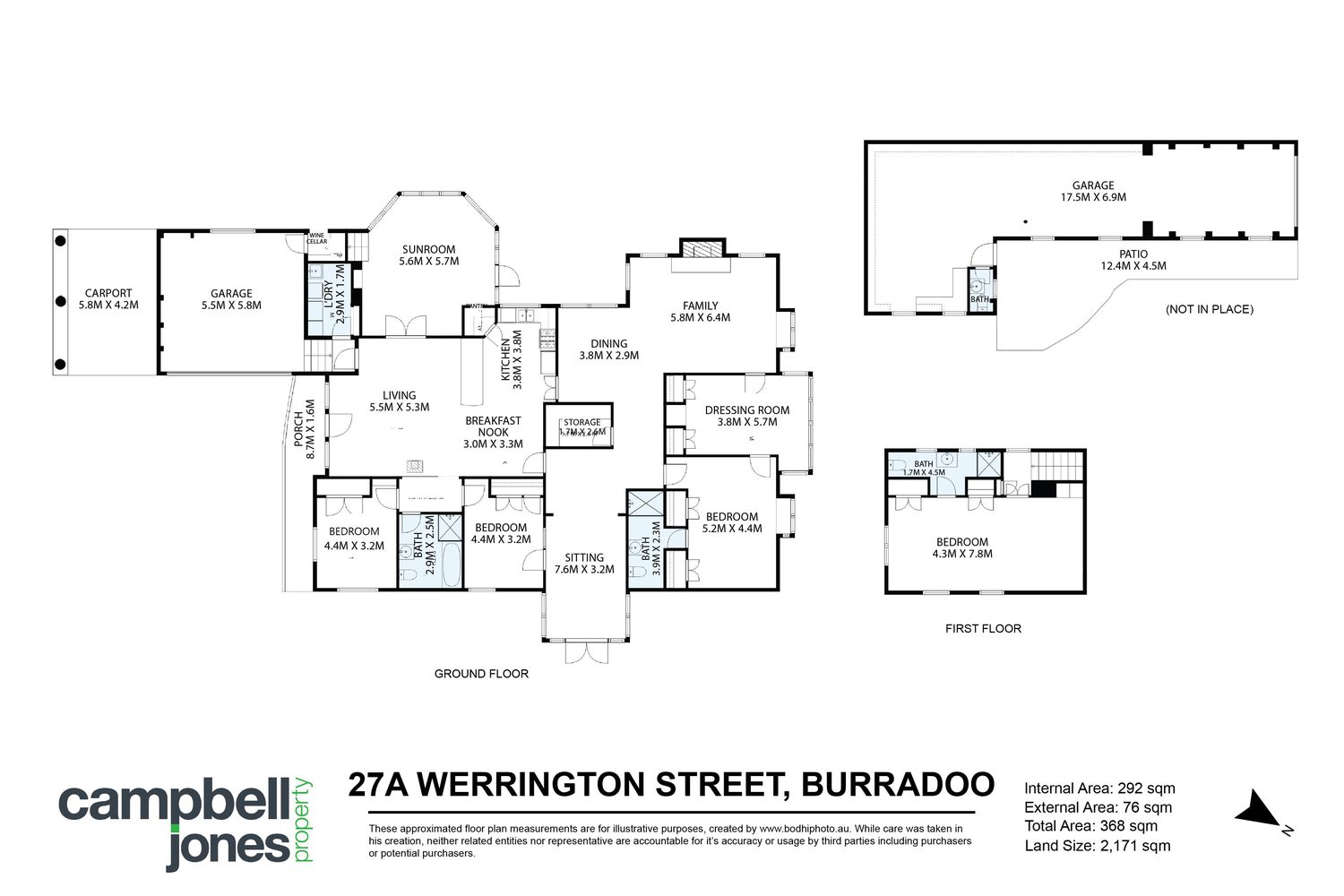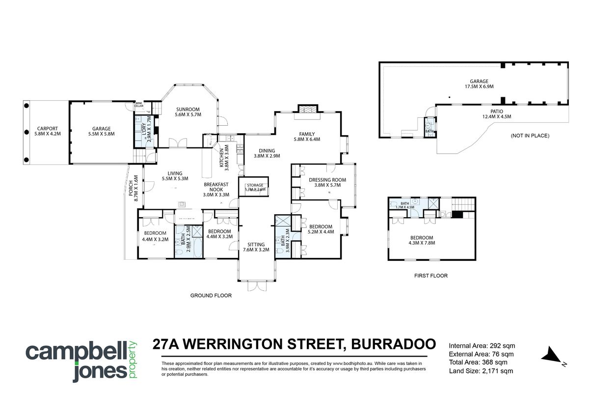 In addition to the double garage and carport, there is an airconditioned free standing triple garage and workshop with separate W.C.