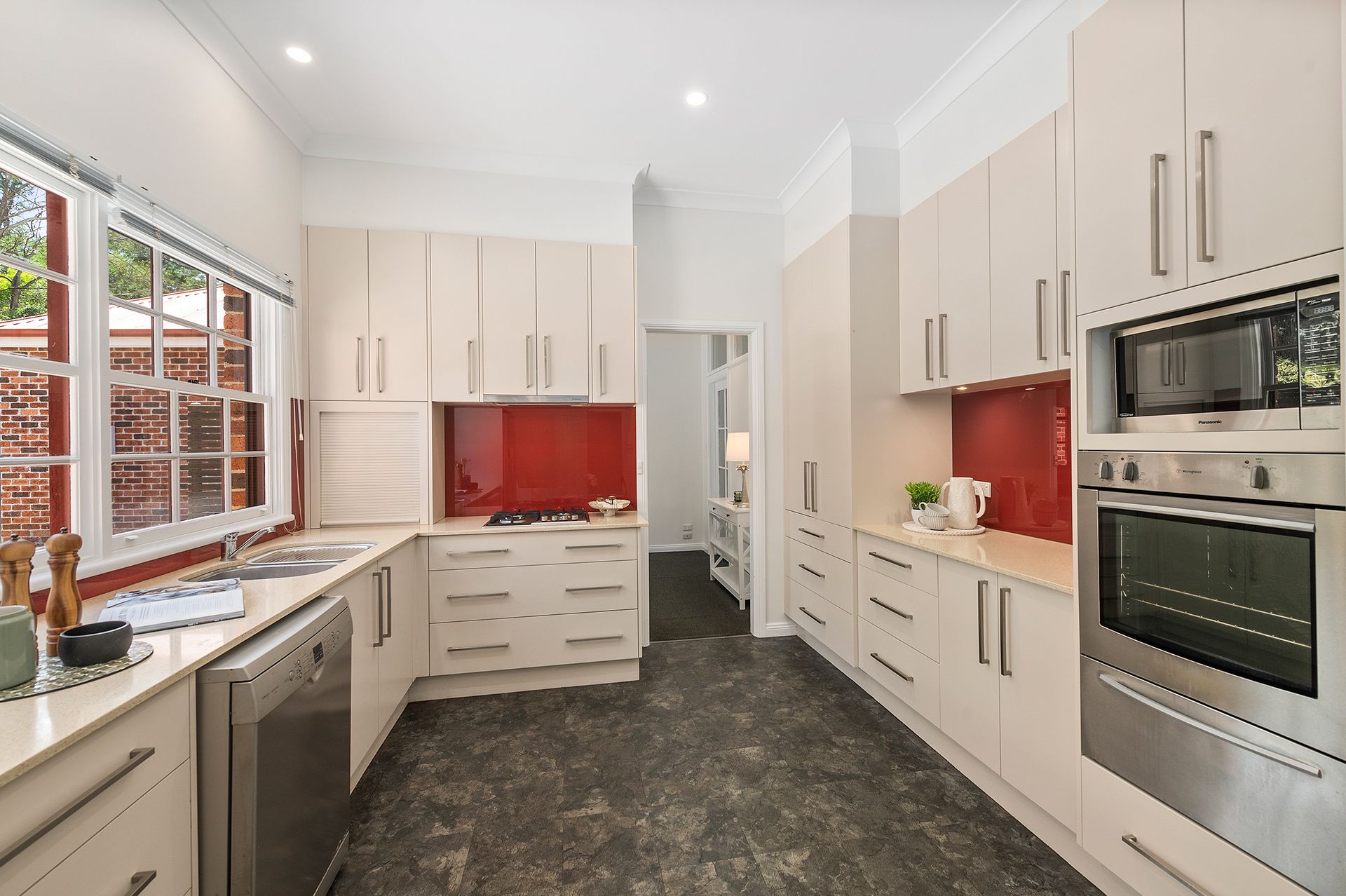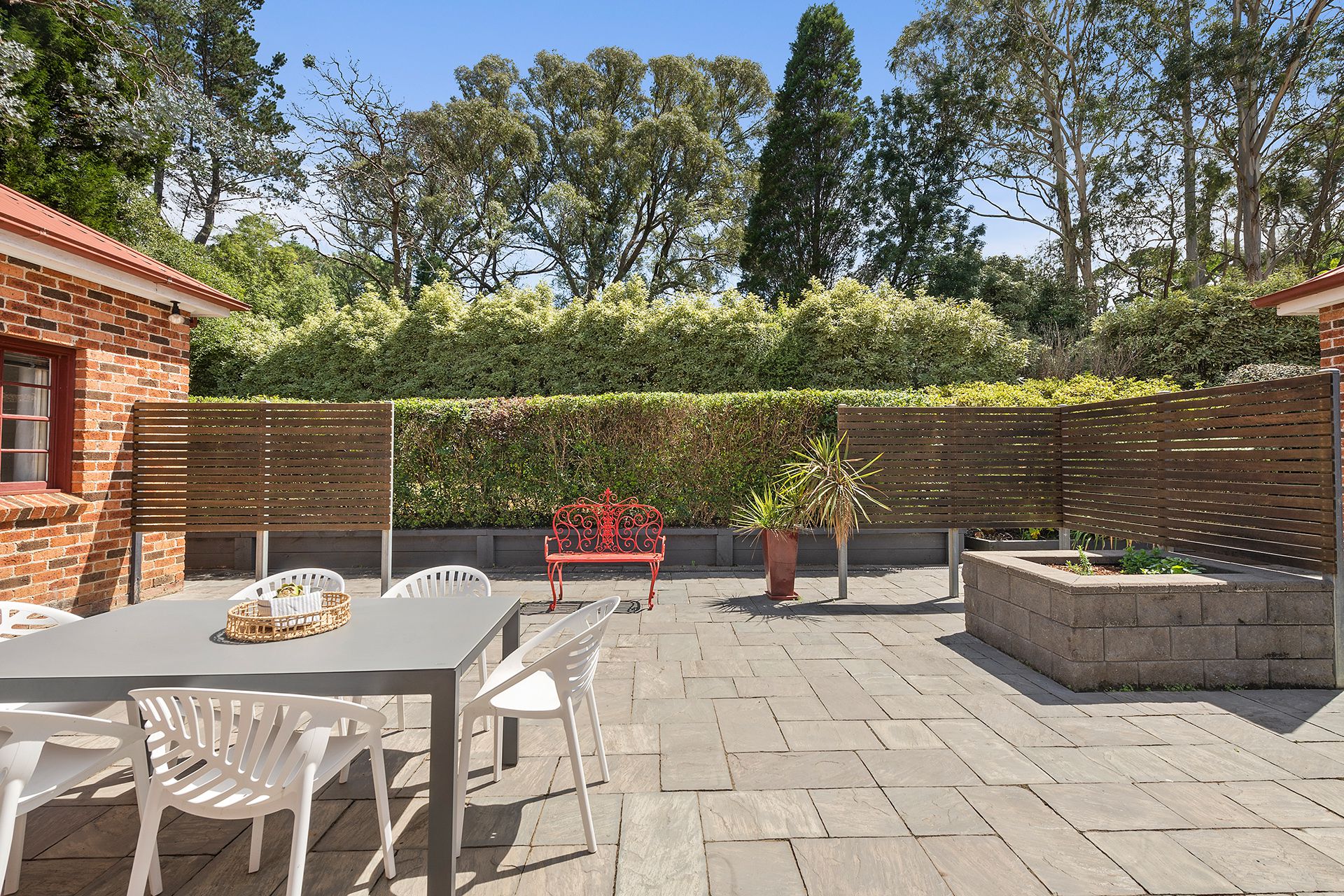 The flowing floor plan provides formal living and dining with cosy gas log fire and vaulted ceiling, casual living opens to the sun filled courtyard. Kitchen with gas and electrical appliances. A generous home office with NBN fibre.
