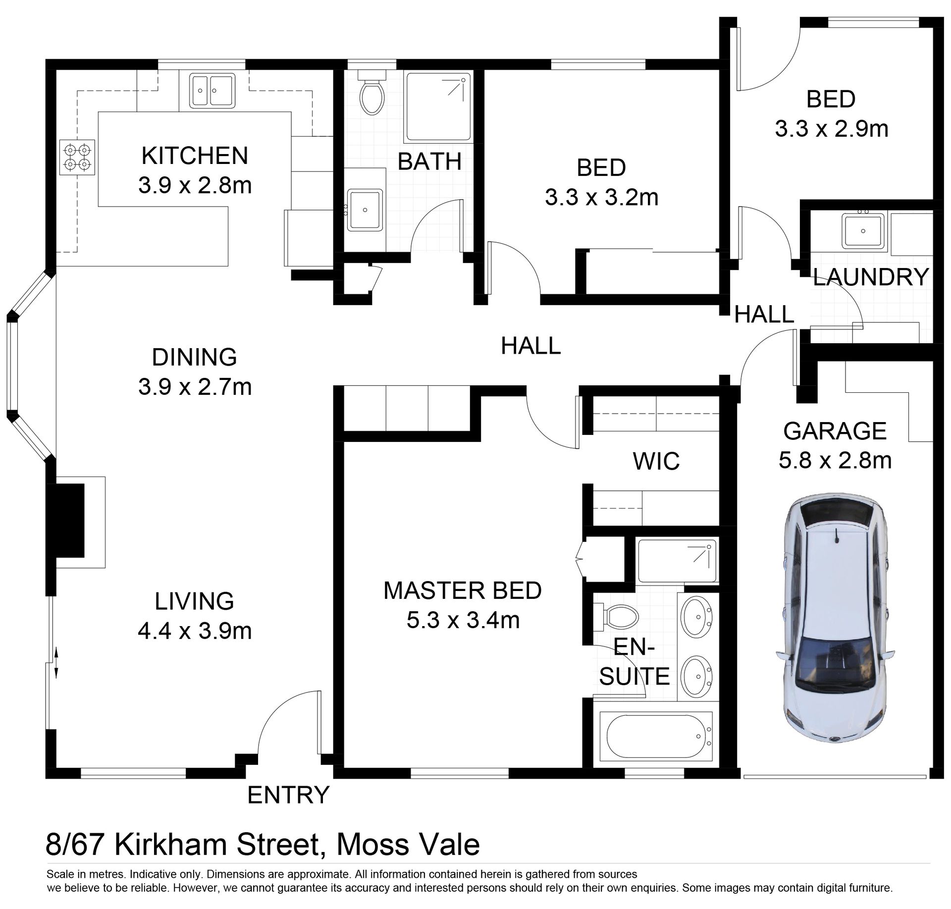 * Second bedroom with built in robes, 3rd bedroom or study with door to garden