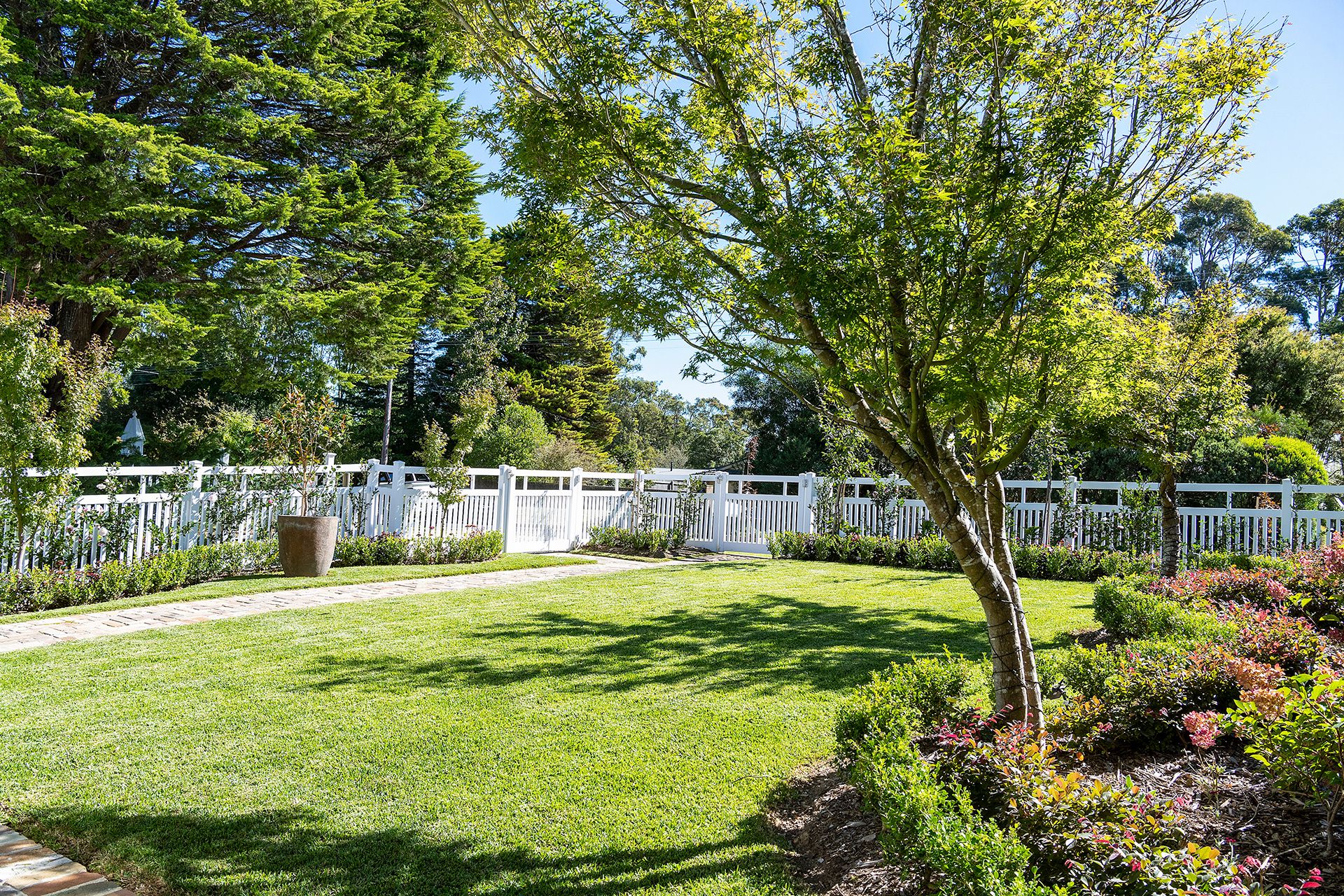 * Meticulous garden with multiple sitting areas for each aspect
