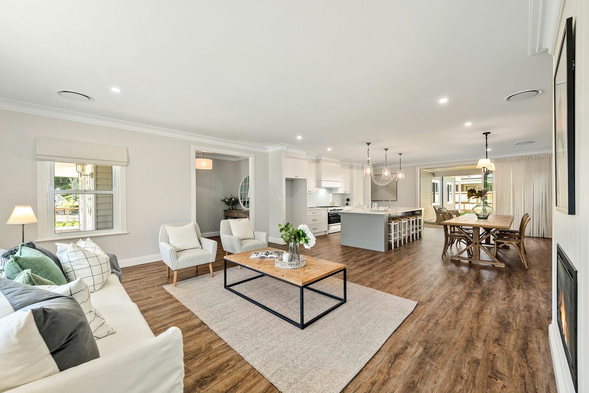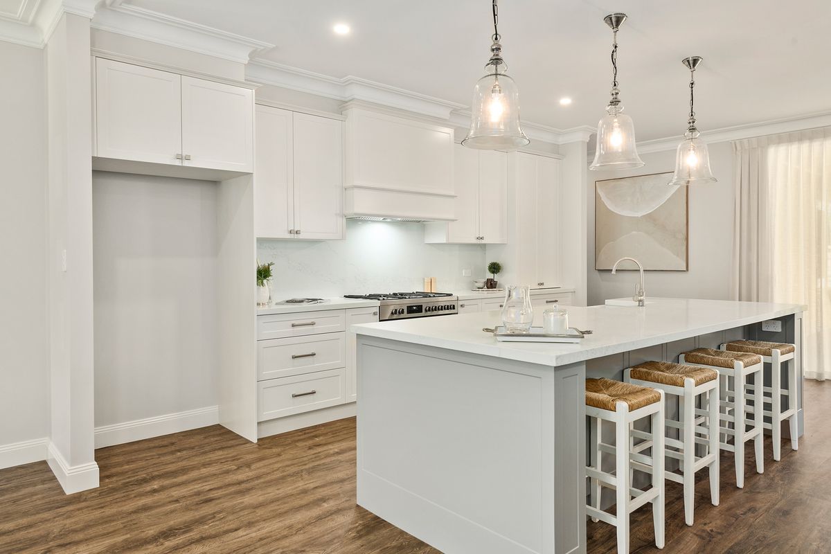 A thoughtfully planned layout balances open living with quiet retreat, centred around a beautifully appointed kitchen with stone finishes, premium appliances, and walk-in pantry. Living and dining zones flow to a covered alfresco with gas fireplace, creating effortless indoor-outdoor living.