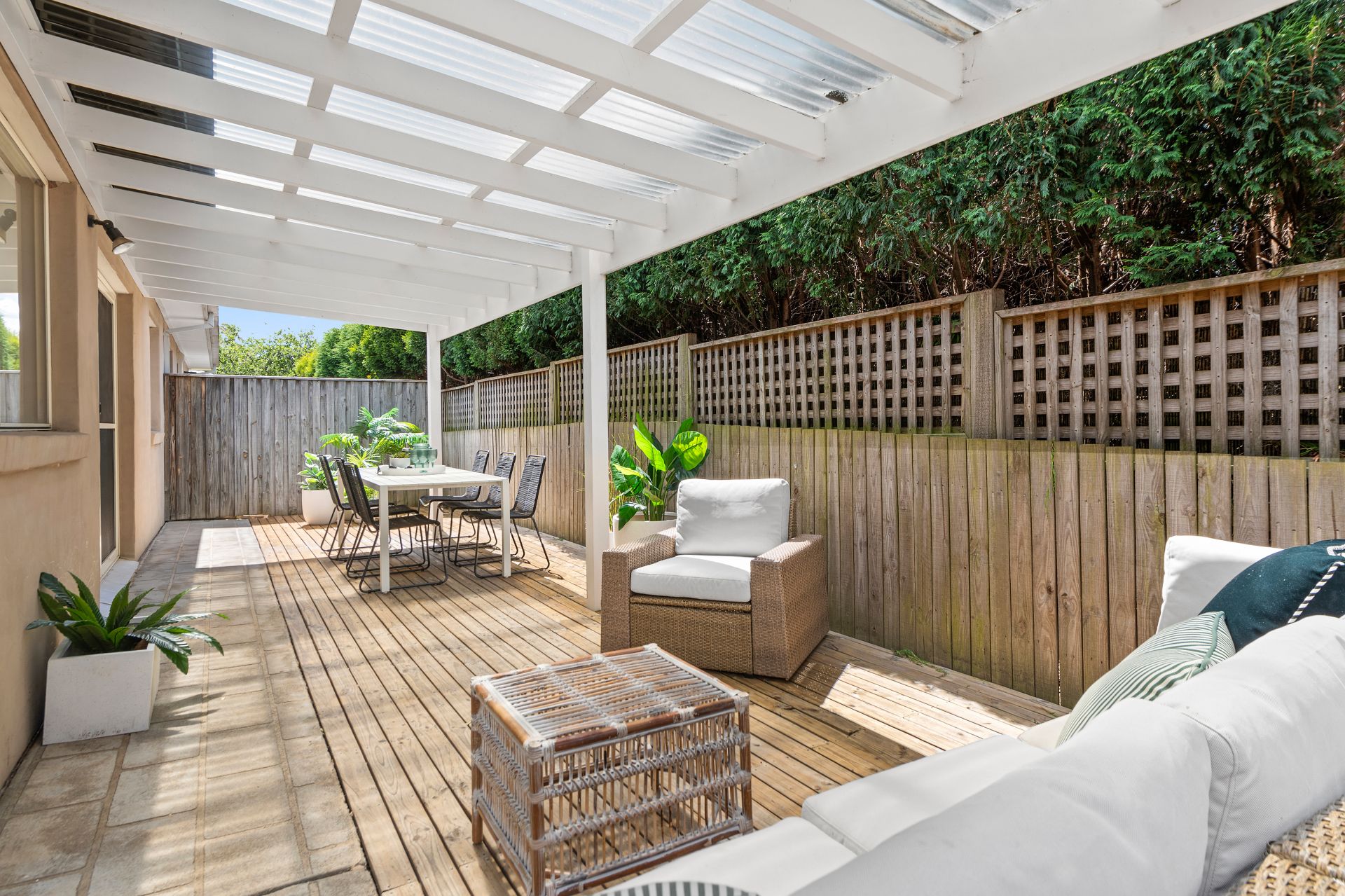 * A large wrap around courtyard with a portion covered for all seasons