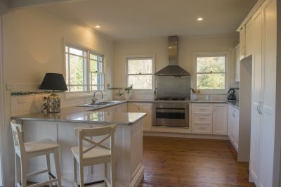 The home includes a lounge room with cathedral ceilings, Jetmaster fire, built in cabinetry and timber floorboards. French doors open to a large wrap around deck overlooking the established gardens. The open plan kitchen features stainless steel appliances and breakfast bar. The dining area has access to an outdoor deck.