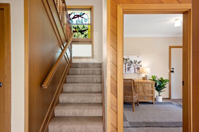 Perfectly positioned up a private drive on an elevated 1/2 acre in the foothills of Mt. Gibraltar with views to Mt. Alexandra and beyond. The timeless unique residence is filled with wonderful architectural features of soaring cedar ceilings, feature sandstone wall and fireplace, solar passive with every room facing north, natural light and timber floors. The huge entertaining terrace completes the relaxed lifestyle for this property.